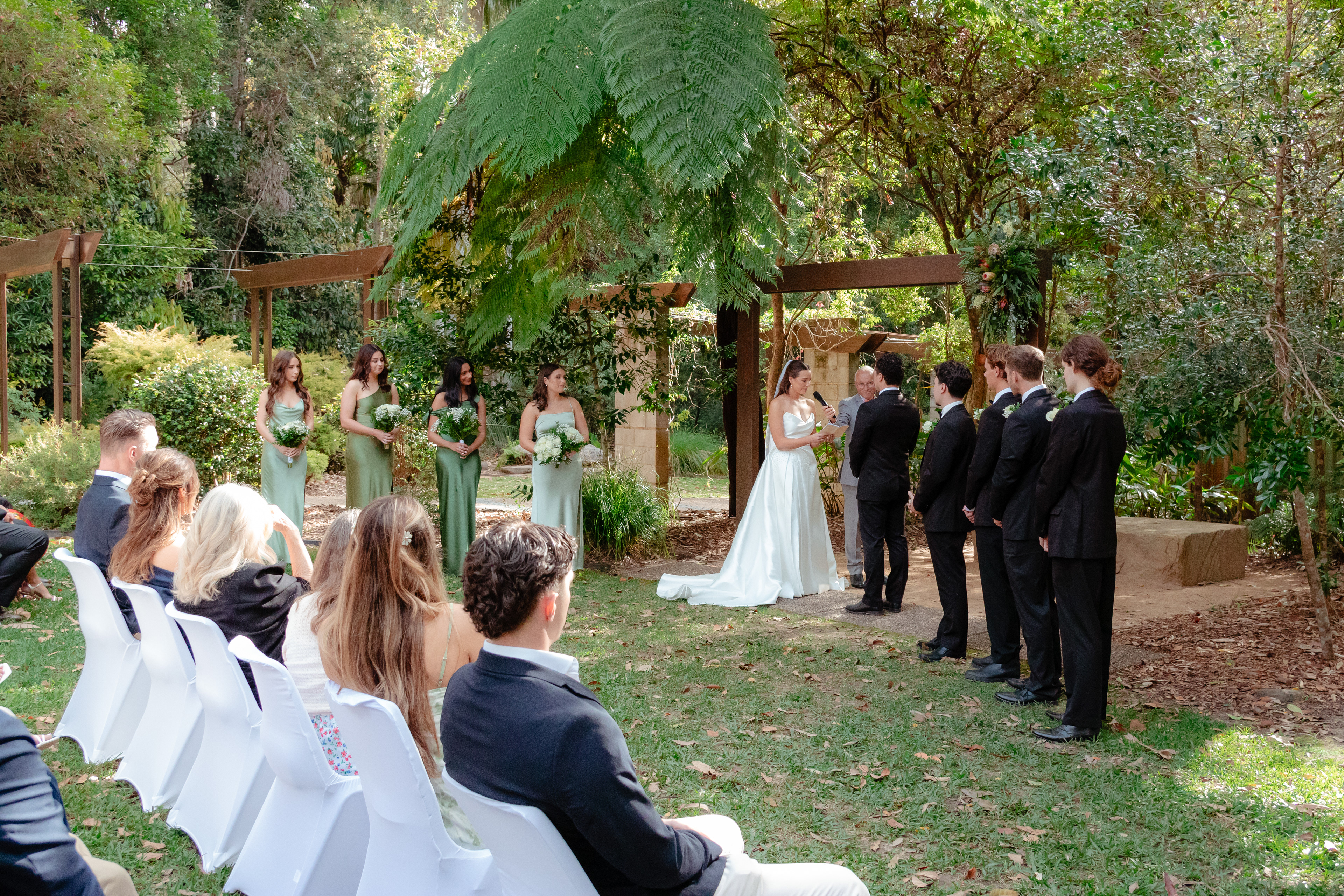 A simple afternoon wedding in the beautiful nature at the Maroochydore Botanical Gardens, for this sweet young couple. With guests from various parts of the world, there was no shortage of big hugs and emotions between everyone. The Bride & Groom were after natural, timeless, and romantic pictures to remember their special day. I covered the arrival of guests, the ceremony & vows, family photos, bridal party photos, and finally the Bride & Groom, totaling about 3 hours.